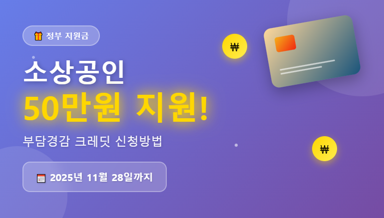 소상공인 부담경감 크레딧은 정말 실질적인 도움이 되는 지원사업입니다. 매달 나가는 고정비 중 50만원을 절감할 수 있다는 건 사장님들께 큰 힘이 될 거예요.